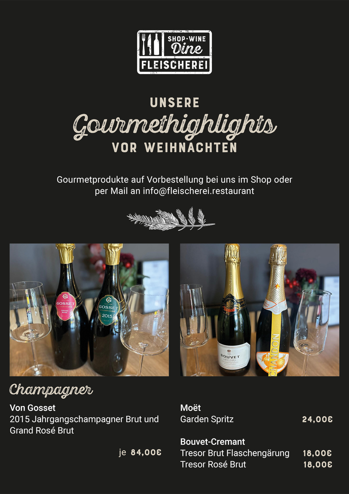- Unser Shop ist von Dienstag bis Samstag für euch geöffnet – mit ausgewählten Weinen und feinen Delikatessen zum Selbergenießen oder Verschenken.