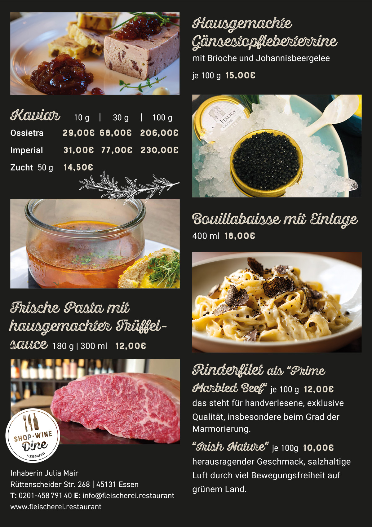 Und wenn das Leben etwas zu feiern hat, begleiten wir Sie auch zu Hause: Ob hochwertiges Fleisch, handwerklich zubereitete Saucen oder kreative kulinarische Ideen – wir sorgen dafür, dass Ihr Fest zu etwas Einzigartigem wird.